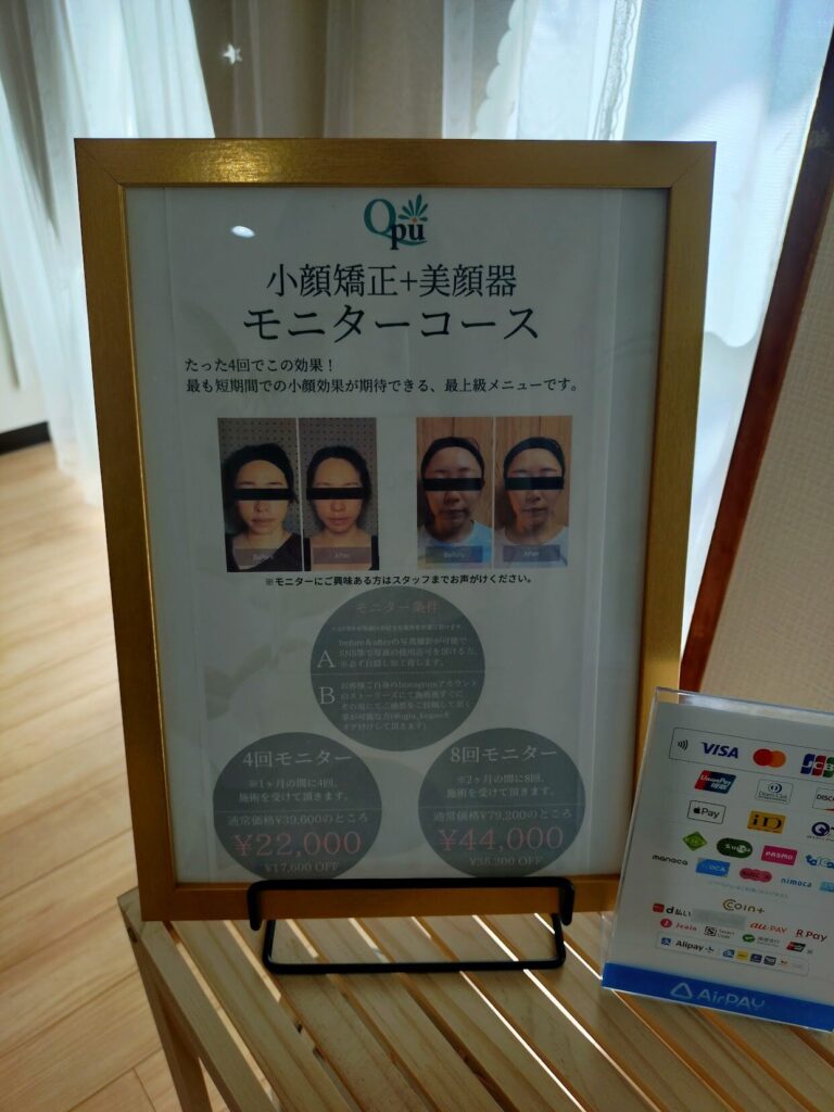 小顔矯正Qpu(キュープ)富士店のメニューは3種類。