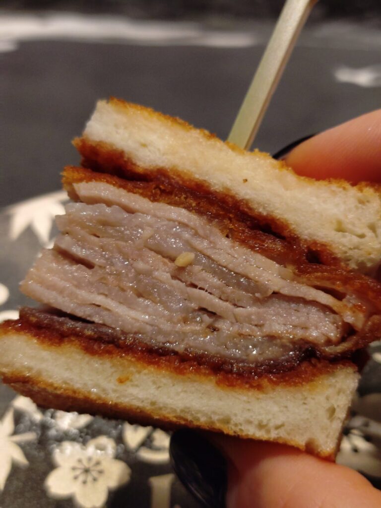 豚バラを揚げてサンドしているのですが、パンはサクサクお肉はジューシーで最高でした!
